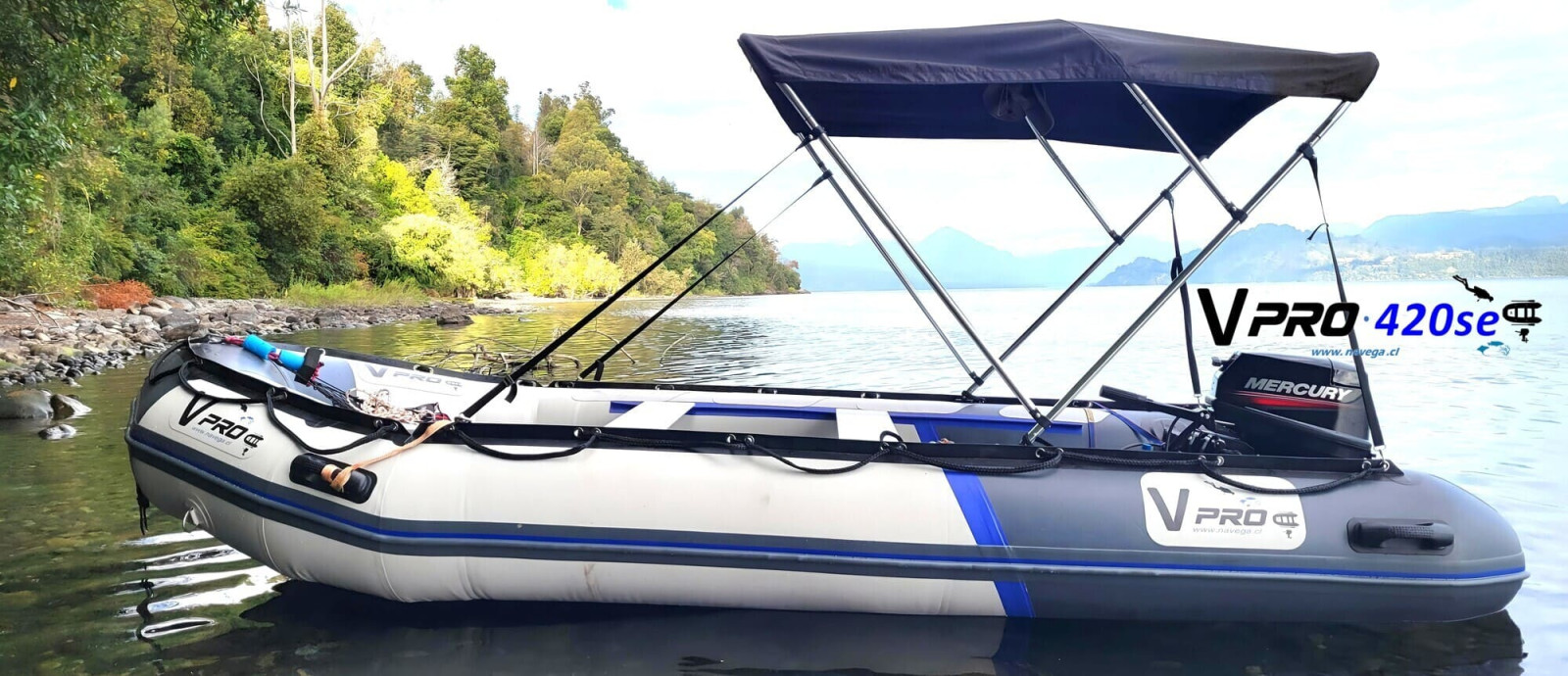 Nuestro zodiac VPro420se con motor fuera de borda Mercury 25HP SeaPro - lo mejor de lo mejor.